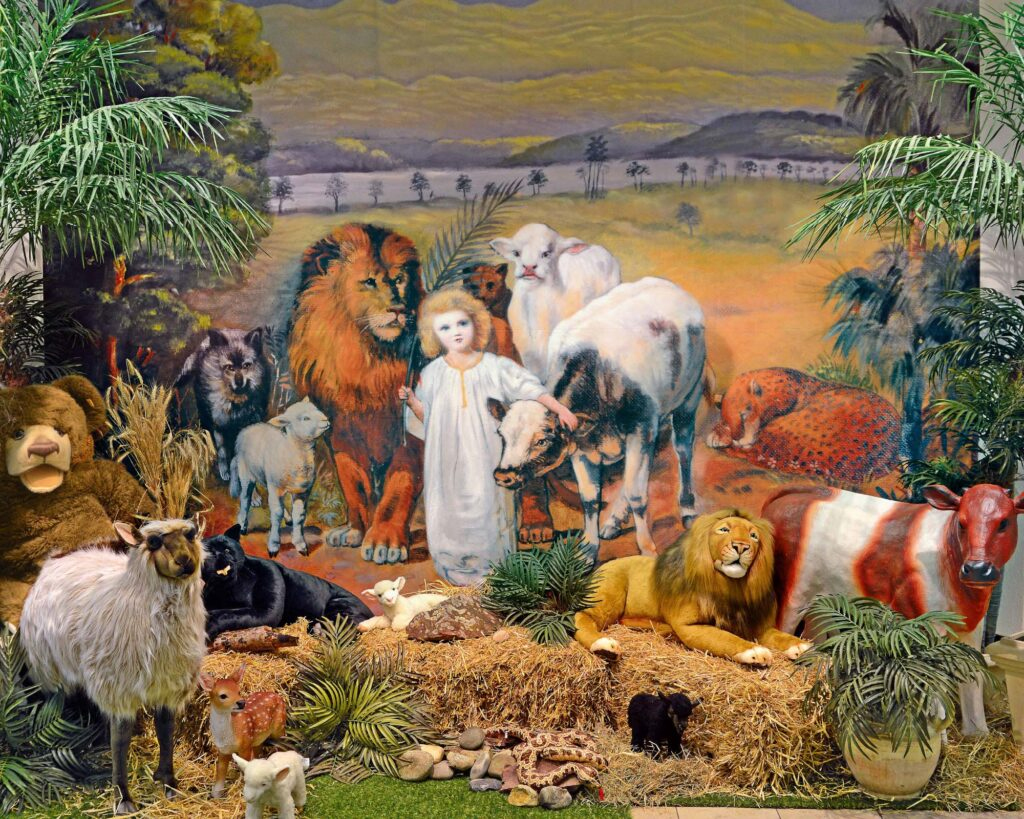 In the Kingdom of Peace of Jesus Christ, what God has announced through the prophet Isaiah will be fulfilled: The wolf will live with the lamb, the leopard will lie down with the goat, the calf and the lion and the yearling together; and a little child will lead them. The cow will feed with the bear, their young will lie down together, and the lion will eat straw like the ox. Infants will play near the hole of the cobra; young children will put their hands into the viper´s nest. They will neither harm nor destroy on all my holy mountain, for the earth will be filled with the knowledge of the LORD as the waters cover the sea. ...